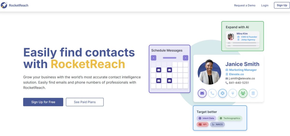 RocketReach helps agencies find verified contact information and gain quick insights into a company’s structure. Its database covers professionals across multiple industries, making it useful for teams that want a straightforward way to expand their outreach lists without relying on manual research.