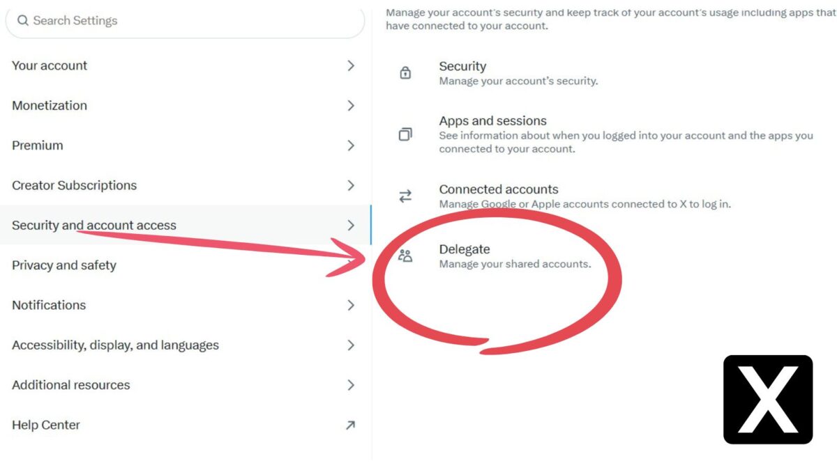 If multiple people need to access your X account, the delegate feature is the safest way to collaborate without sharing your account password. Delegated account access keeps sensitive settings secure while your team works together.